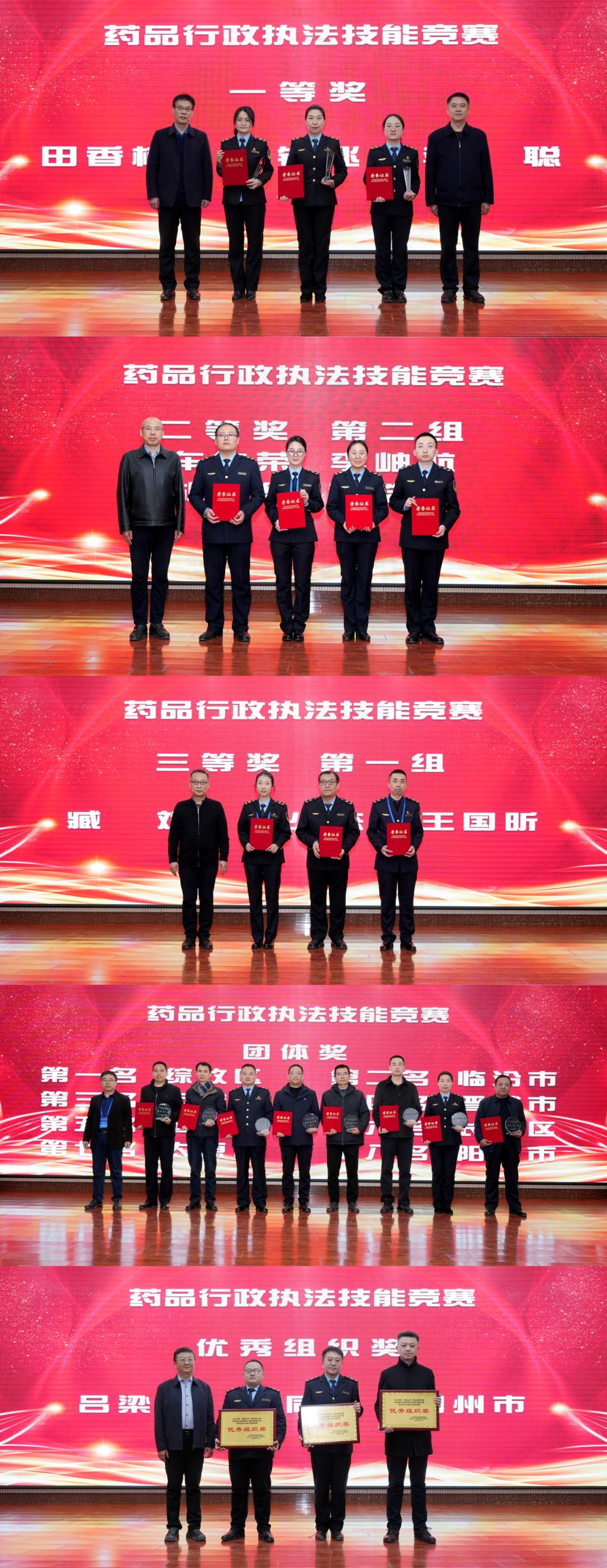 经过激烈角逐,大赛最终决出个人一等奖9项、二等奖19项,三等奖28项,团体奖16项、优秀组织奖7项。sunbet申搏荣获突出贡献奖。根据大赛奖励办法,获得药品购销技能赛项决赛第一名的优秀选手,将按程序申报“三晋技术能手”荣誉称号;药品监管行政执法技能赛项第一名且符合条件的选手,将优先申报“山西省五一劳动奖章”。