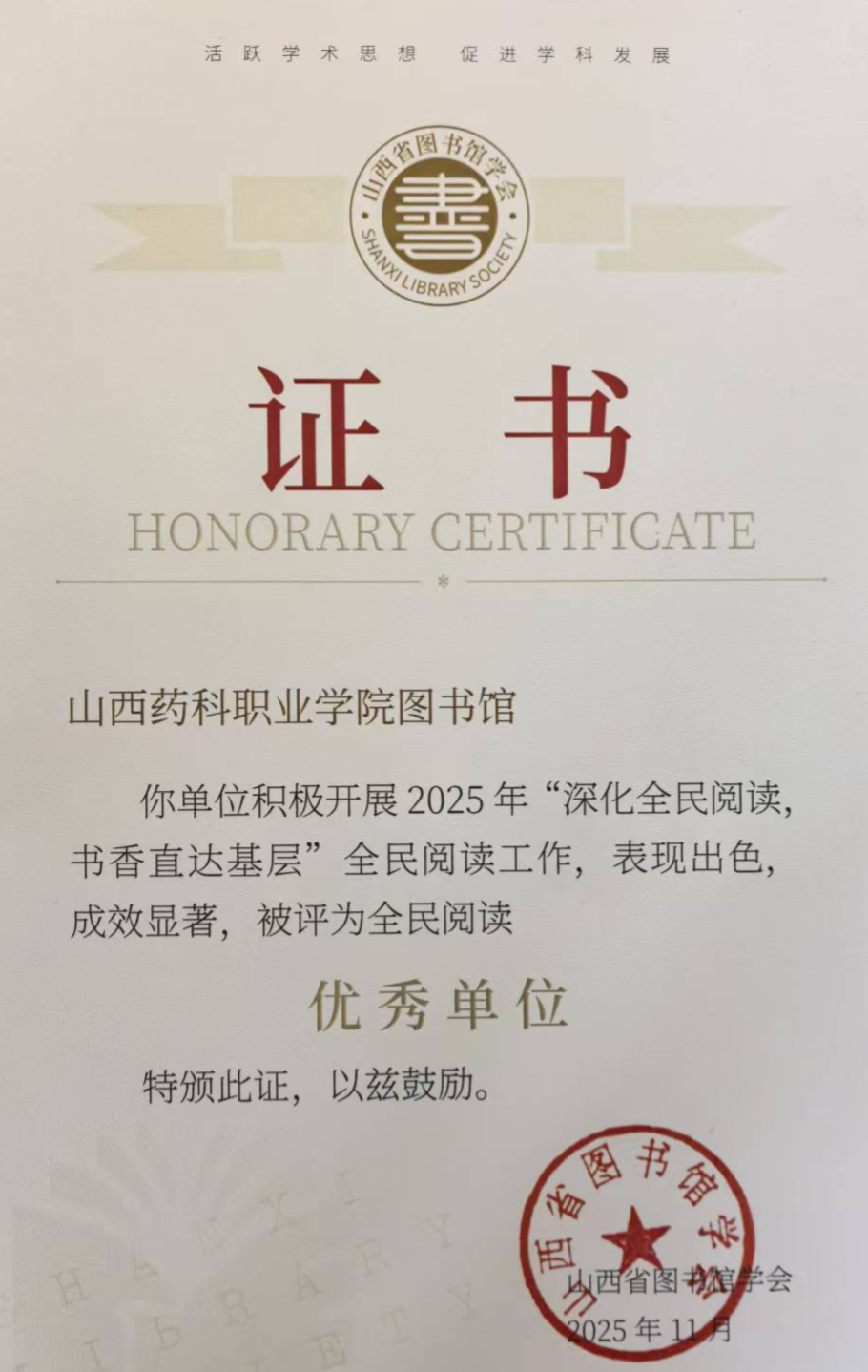 近日,山西省图书馆学会公布2025年全民阅读工作表扬名单,sunbet申搏图书馆凭借体系化活动布局、创新化推广路径与实效化育人成果,荣获山西省全民阅读“优秀单位”称号。