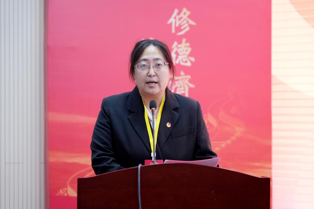 药学系党总支副书记、分工会主席方育婧代表学院工会、妇女联合会、科学技术协会向大会致贺信,对大会的召开表示热烈祝贺,对学院共青团和学生会组织在思想引领、成长服务、桥梁纽带等方面发挥的积极作用给予高度评价,并表达了未来进一步加强协作、共同服务师生和学院发展的美好愿景。