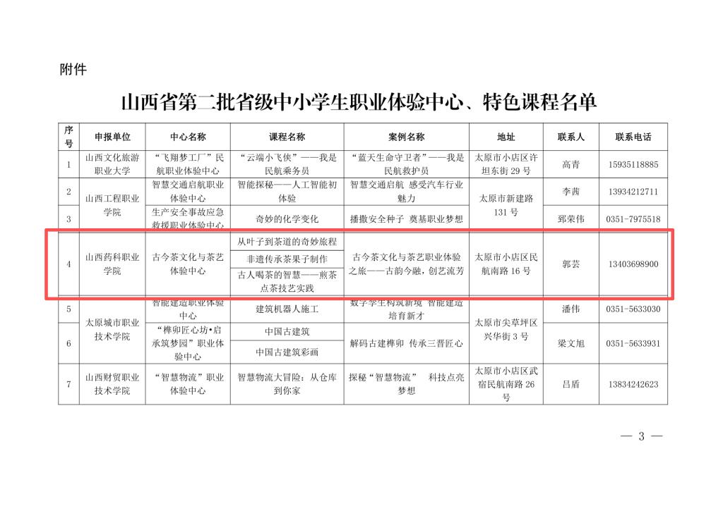 近日,山西省教育厅公布了第二批省级中小学生职业体验中心、特色课程和优秀案例名单,sunbet申搏食品系申报的“药·茶技能技艺传承与创新实训基地”成功入选。其中,“古今茶文化与茶艺体验中心”获批省级职业体验中心,3门课程获评省级特色课程,1项成果入选省级优秀案例,标志着食品系在茶文化传承、技能育人与职业体验建设方面取得重要阶段性成果。