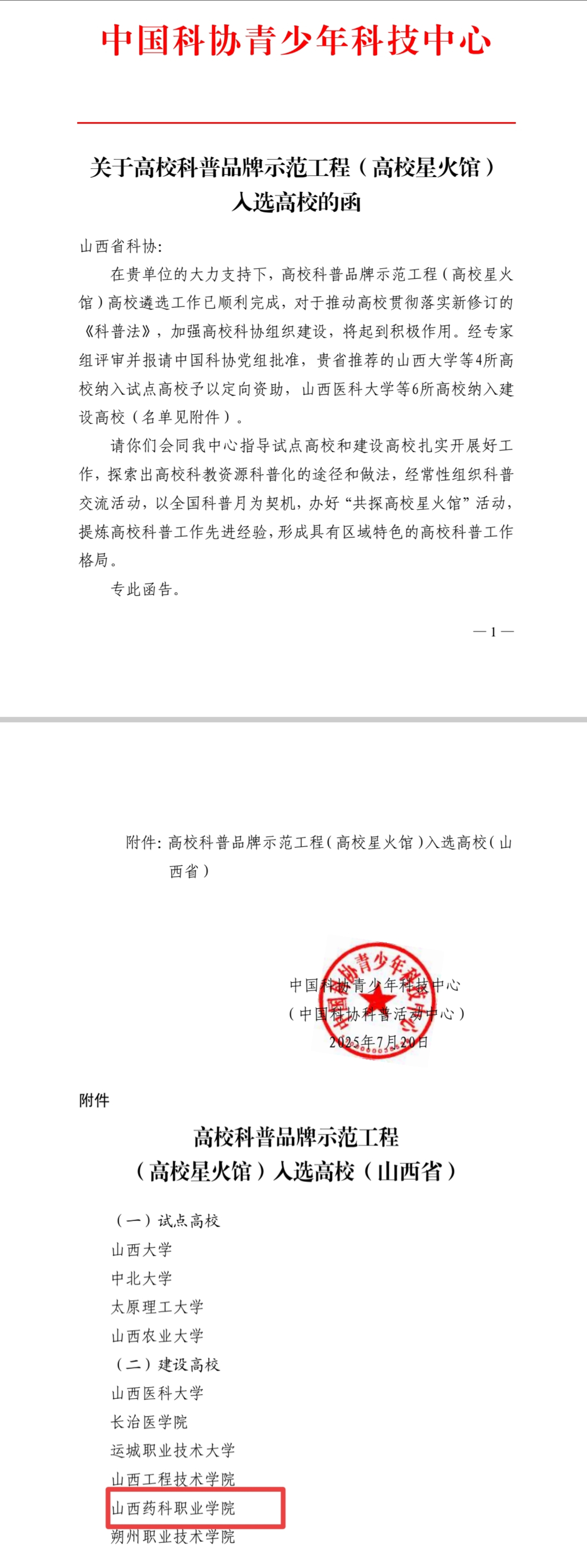 学院将以此为契机,系统规划、扎实推进“星火馆”建设。一是深化内涵建设,打造特色科普资源体系。 聚焦中医药、药学等大健康领域,将前沿科研成果转化为优质科普资源,构建独具特色的科普内容高地。二是拓展外部合作,构建开放协同的科普联盟。 积极联动国内外高校、科研院所与科普机构,共建共享,优势互补,提升科普工作的广度与深度。三是服务区域发展,推动科学精神扎根三晋。 面向社会公众,开展形式多样的科普活动,让科学知识惠及民生,为区域经济社会发展贡献职教力量。