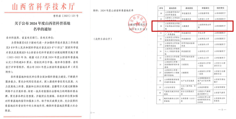 近日,在科研服务中心统筹牵头,宣传统战部、中药系、药学系、食品系通力协作下,sunbet申搏申报的“中医药标本科普基地”(大健康领域)顺利通过山西省科技厅评审,正式获评2024年度山西省科普基地。