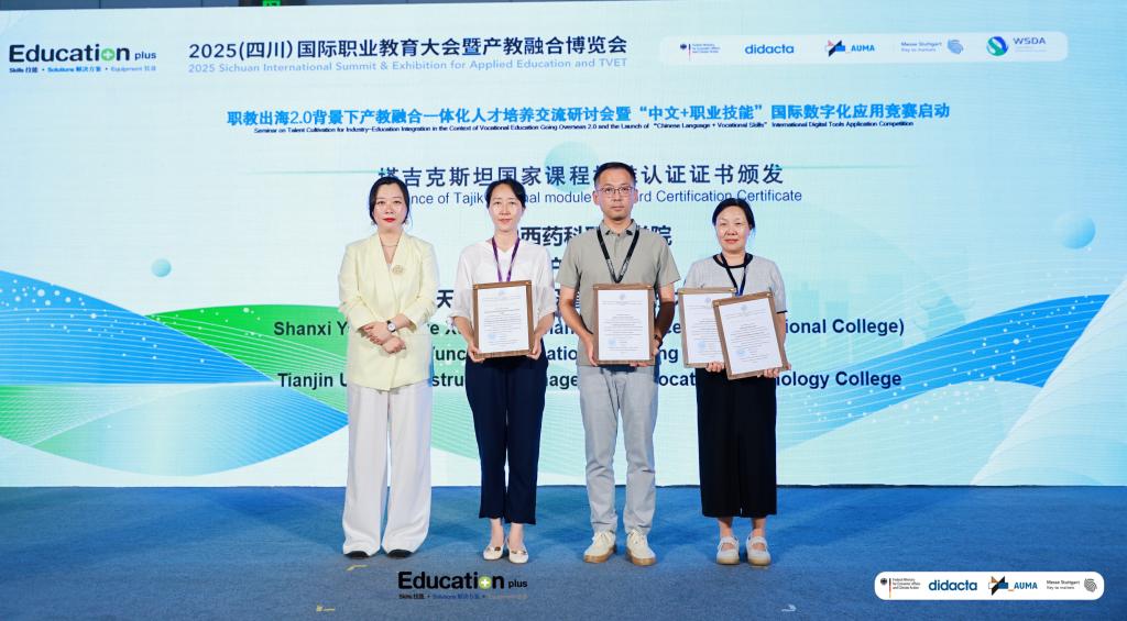 会议期间,学院获得多项成果。由学院精心编写的《药膳与食疗技术》课程标准,成功通过塔吉克斯坦国家职业教育委员会认证,大会现场由外方代表为学院颁发了认证证书。与此同时,《药膳与食疗技术》课程顺利获得职教出海2.0标准输出与数字化国际精品课程建设及教材双出版立项。这一成果标志着学院在课程体系与国际职业教育标准接轨的道路上迈出坚实步伐,有力推动了中医药文化的国际传播。据悉,该课程建设成果后续将被收录至外研国际智慧教育平台以及塔吉克斯坦国家数字资源库,进一步扩大其国际影响力与辐射范围。