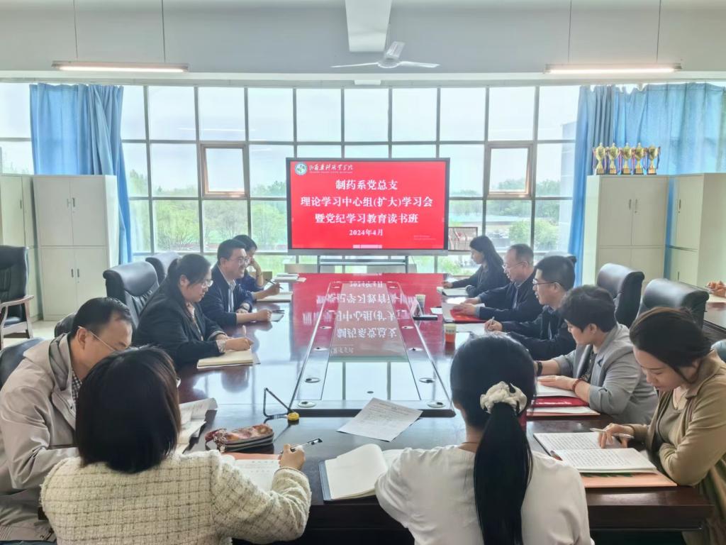 4月22日,制药系党总支召开理论学习中心组(扩大)会议暨党纪学习教育读书班,深入学习习近平总书记关于开展党纪学习教育的重要讲话和重要指示精神,贯彻落实学院党委有关部署要求,聚焦学习领会新修订的《中国共产党纪律处分条例》。会议由制药系党总支书记武江主持,学...2024-04-29 -